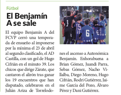 Alirón del FCVP benjamín Publicado por R | May 4, 2022 | Deportes, FCVP, Fútbol | 0 | Publicado en mayo de 2022