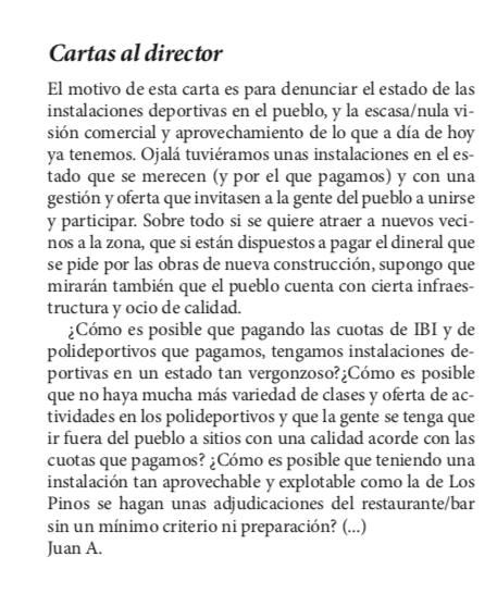 Carta al director: instalaciones deportivas Publicado por R | Feb 3, 2022 | Actualidad | 0 | Publicado febrero 2022