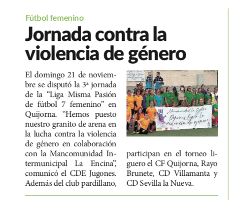El fútbol femenino, contra la violencia machista Publicado por R | Dic 2, 2021 | Deportes | 0 | Diciembre 2021