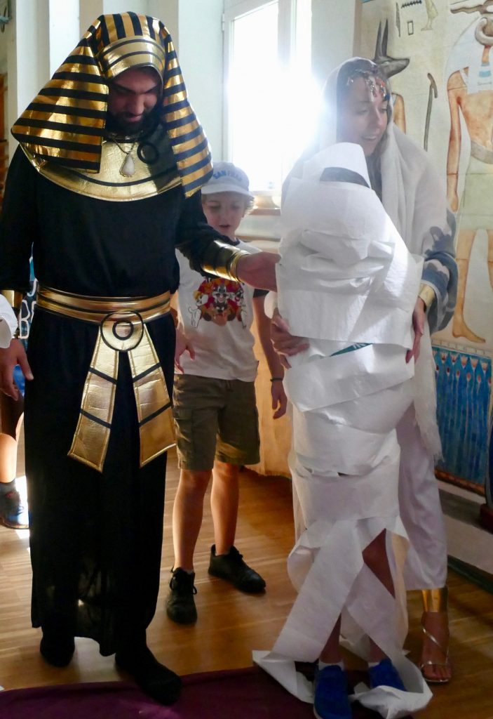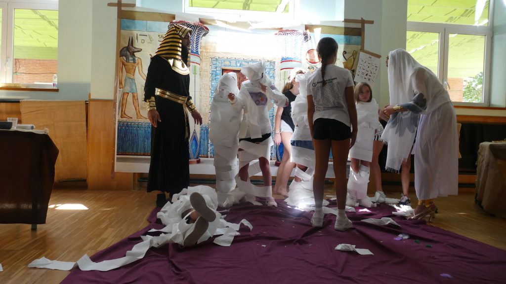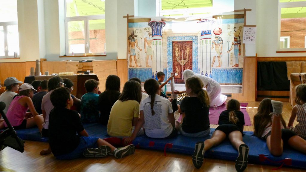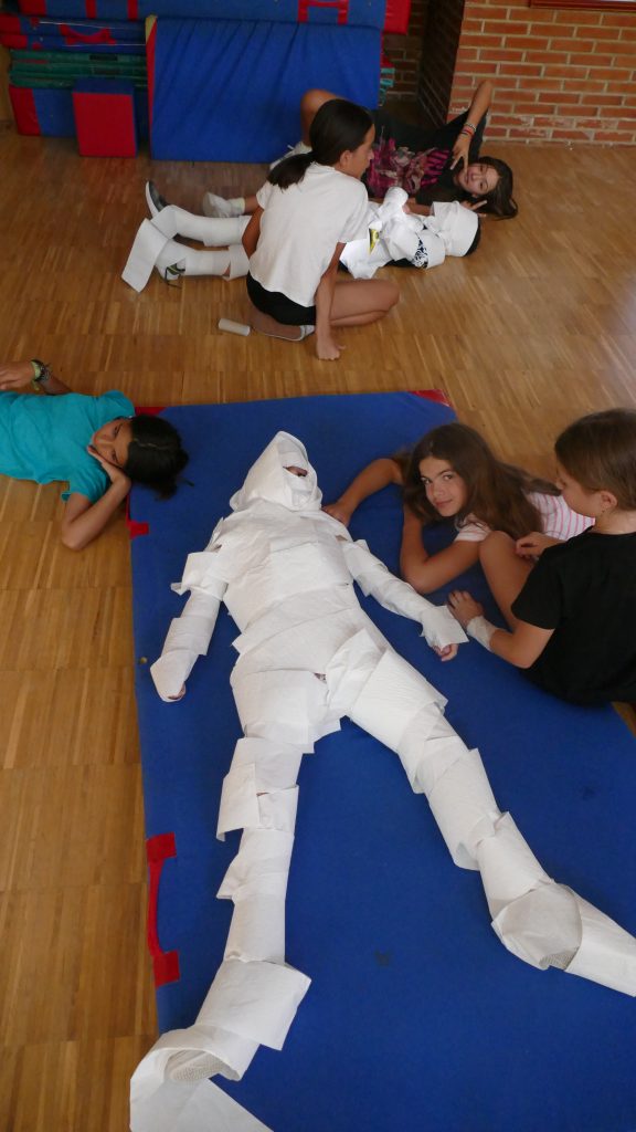 “¡Ese video que hemos visto de Pablo es inclusión real!”, afirma Sara Berzal, gerente de la empresa que gestiona el campamento. Hoy está disfrazada de faraona y rodeada de varias pequeñas momias vivientes en el aula de actividades. Los martes son temáticos y toca el Antiguo Egipto. Y los viernes, piscina.