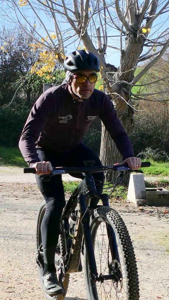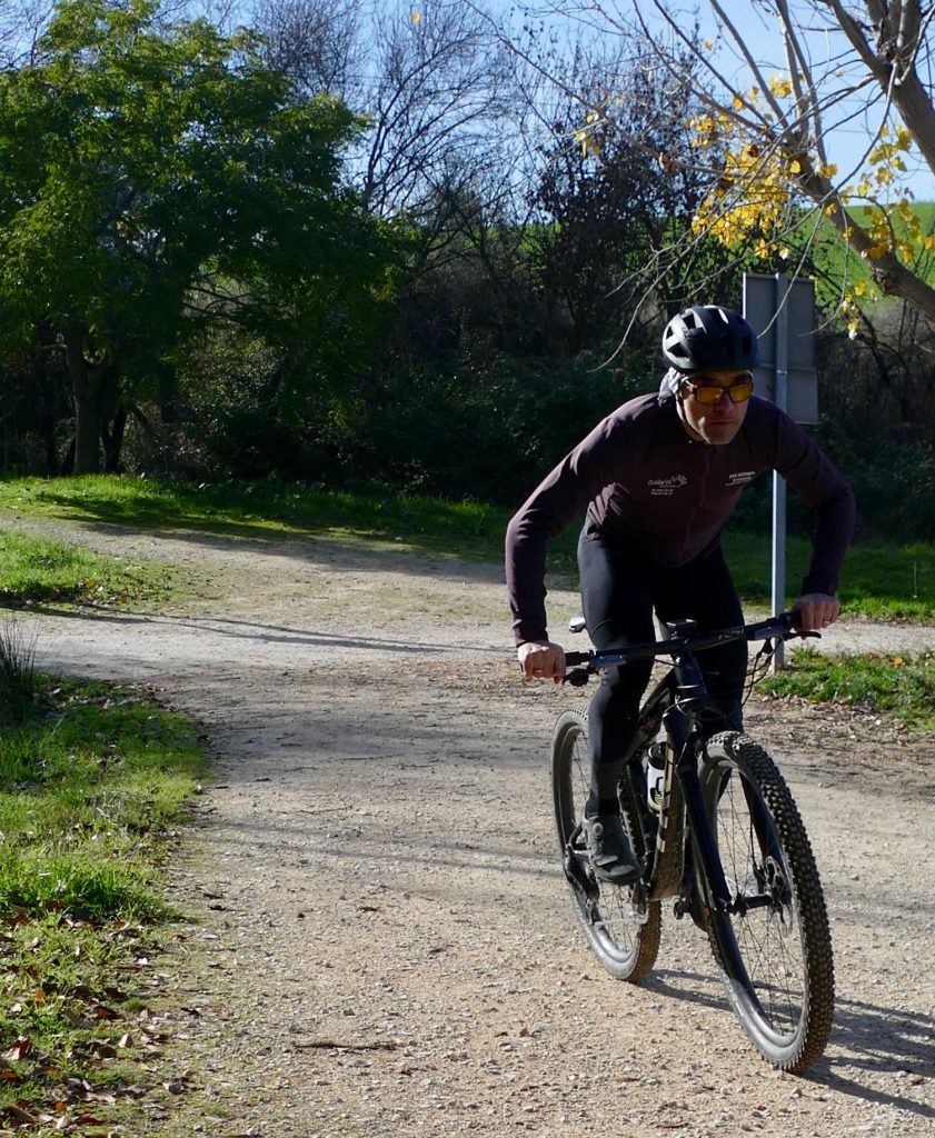 La gran pasión de Fernando Martín es montar en bici y ahora el terreno se le allana gracias a Inma Martín y al apoyo que le brinda Cuidarte Fisioterapia de Vva. del Pardillo. Este biker de 49 años, casado y padre de una niña de 11, trabaja como consultor tecnológico y para ganarle horas al día sale de casa a entrenar antes de las 6 de la mañana. Como es de noche, suele andar por Villafranca del Castillo, zona que controla y que está más iluminada. Es un habitual de las pruebas y marchas cicloturistas que se celebran en Madrid y Toledo. Monta desde que era niño y con 15 años comenzó a competir con los amigos asturianos en el Godos Racing Team, en el pueblo de sus abuelos. Recuerda con cariño aquella época y mantiene el contacto con sus antiguos compañeros. Desde hace tres años cuenta con un entrenador que, entre otras cosas, le ha ayudado a coger confianza en las bajadas.