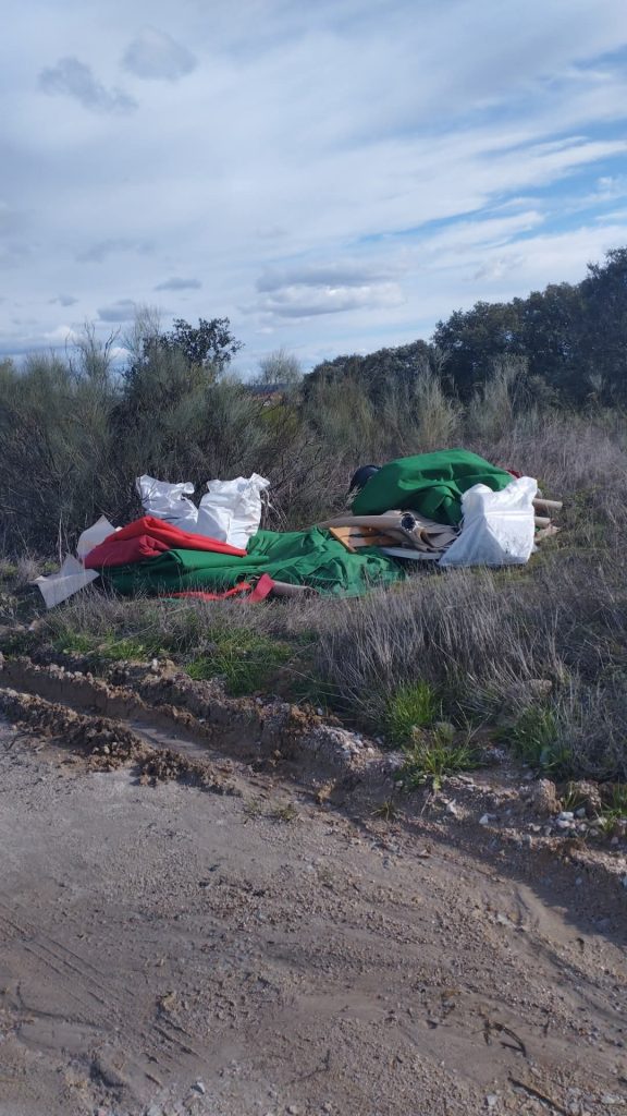 Mayo 2025 // La vecina Esther M. denunció el 25 de marzo un vertido de basura, “restos de un evento”, en las afueras del casco urbano. “Llévalo al punto limpio, que más o menos está a la misma distancia. Hay que ser guarro y vago”.