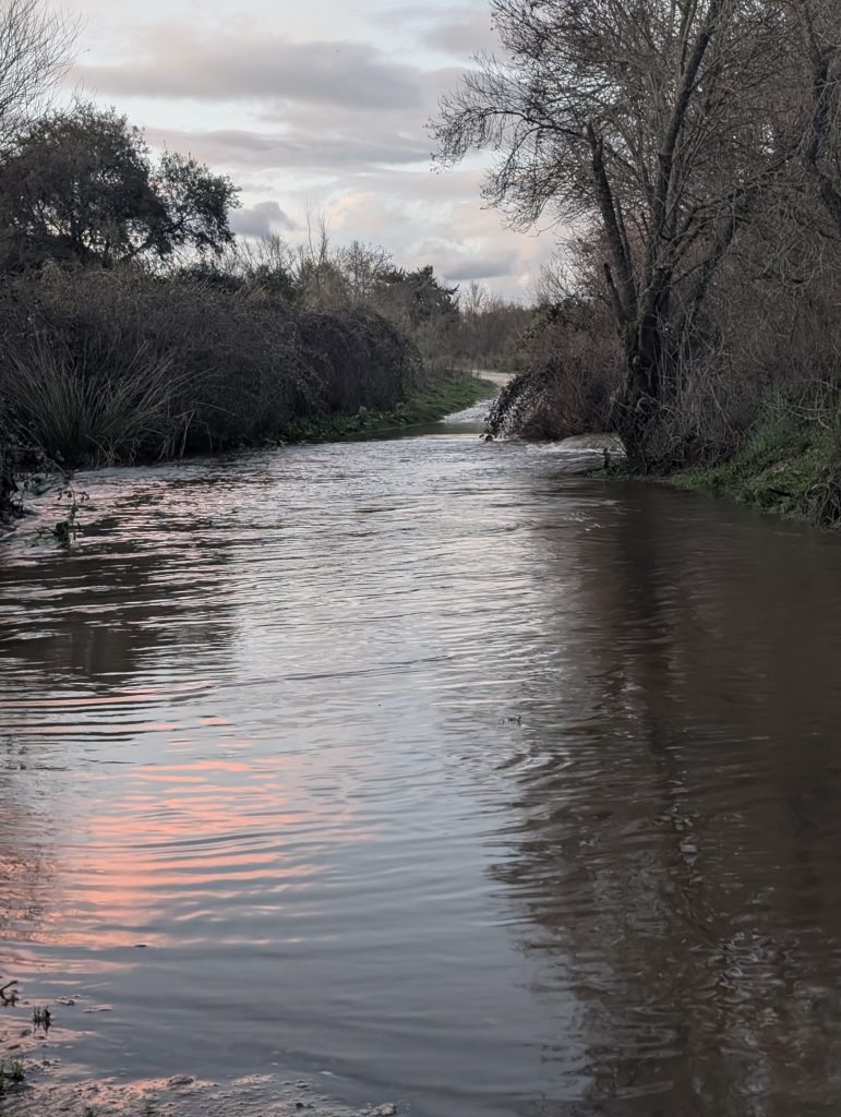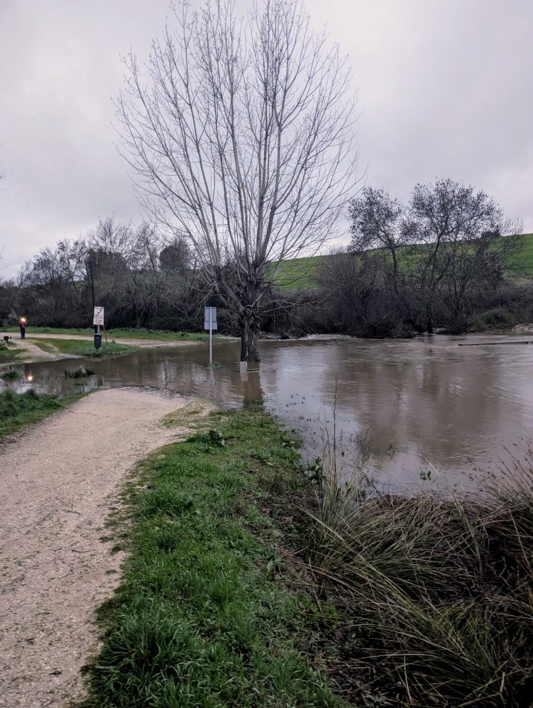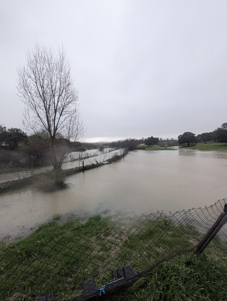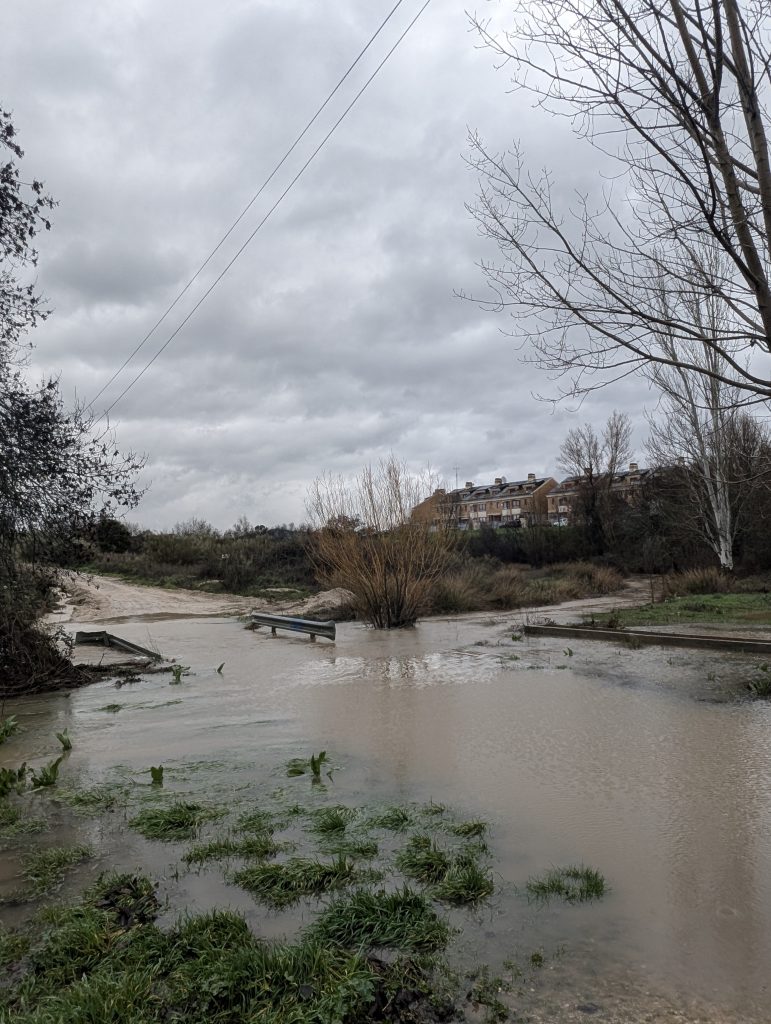 Las borrascas encadenadas de marzo provocaron las crecidas de los arroyos y ríos de Vva. del Pardillo. El 6 de marzo arreció Jana, el día 10 fue el turno de Konrad, el día 14 entró Laurence y el día 20 Martinho, que cerró la serie de borrascas de gran impacto. El cauce del arroyo de los Palacios se quedó pequeño en varios tramos, se formaron impresionantes balsas en el camino del Retamar y el caudal de los ríos Aulencia y Guadarrama se multiplicó. Fue el preludio de una efervescente primavera.