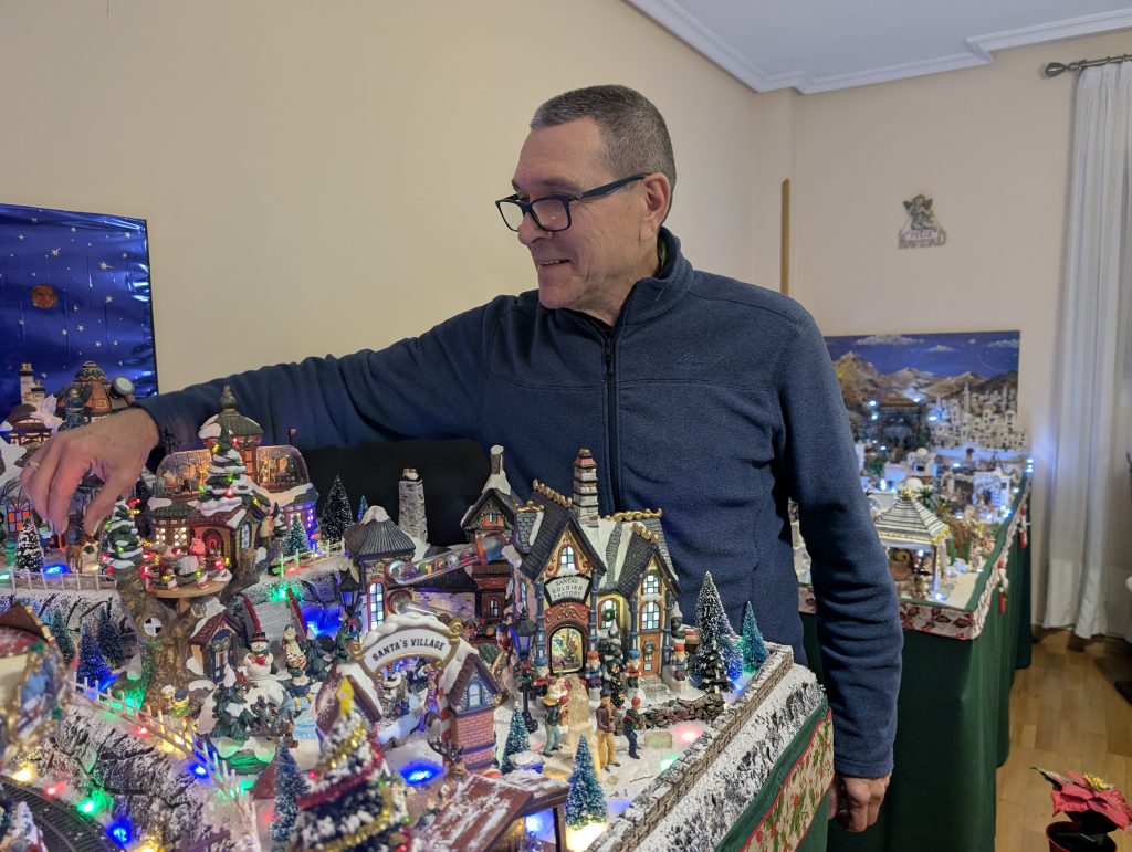 Como cada año, el vecino Juan di Croce ha montado dos impresionantes instalaciones navideñas en el salón de su casa de Vva. del Pardillo, donde reside desde 2015. De padres italianos y nacido en Venezuela hace 67 años, la tradición le viene de largo. Está casado con Teresa, madrileña de toda la vida, y tienen dos hijos mayores. Uno de los montajes es un “Christmas village” que cuenta, entre otras muchas cosas, con noria, tren y la estación “VVa. Del Pardillo”. Con el segundo, un nacimiento tradicional más artesanal, ha ganado tres ediciones del concurso local de belenes, aunque en la última edición no se presentó. Los detalles están cuidados al máximo y para la próxima Navidad planea una ampliación de ambos. Este geólogo especializado en la exploración de petróleo, ya jubilado, empieza a darle vueltas a la composición unos meses antes, aunque el montaje en sí le lleva tres días.