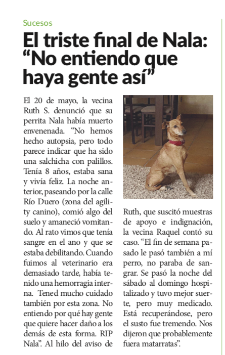 Muere una perra por envenenamiento Publicado por R | Jun 6, 2022 | Seguridad, Sucesos | 0 | Junio 2022