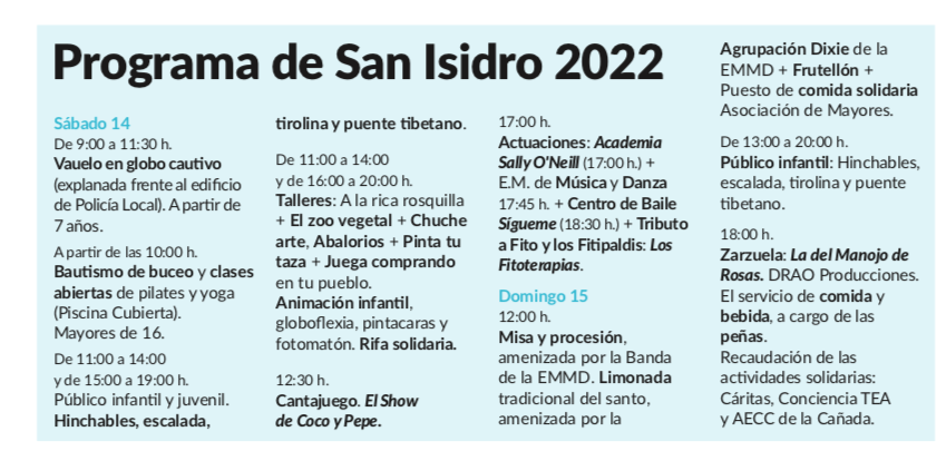 Programa fiestas de San Isidro 2022 Publicado por R | May 3, 2022 | Villanueva de la Cañada | 0 | Publicado en mayo de 2022