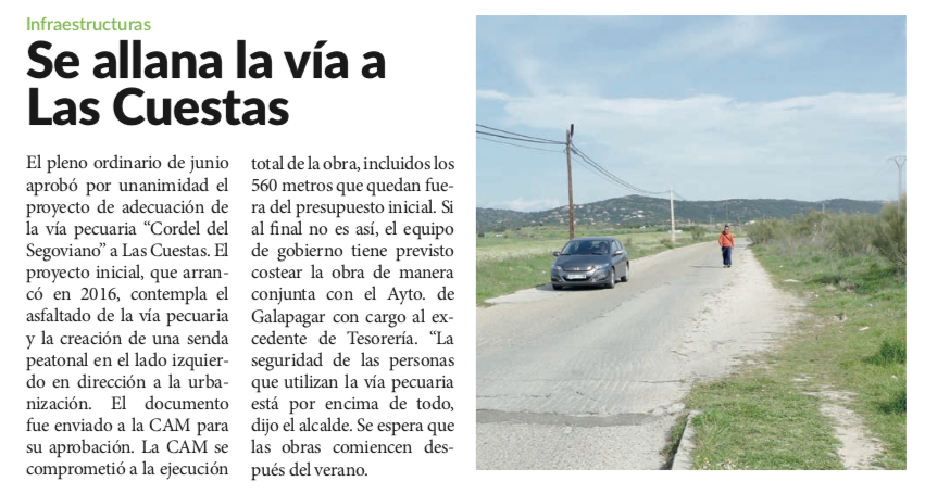 Vía pecuaria a Las Cuestas Publicado por R | Jun 30, 2022 | Infraestructuras, Urbanismo | 0 | Sept 2023 / Pleno junio 2023