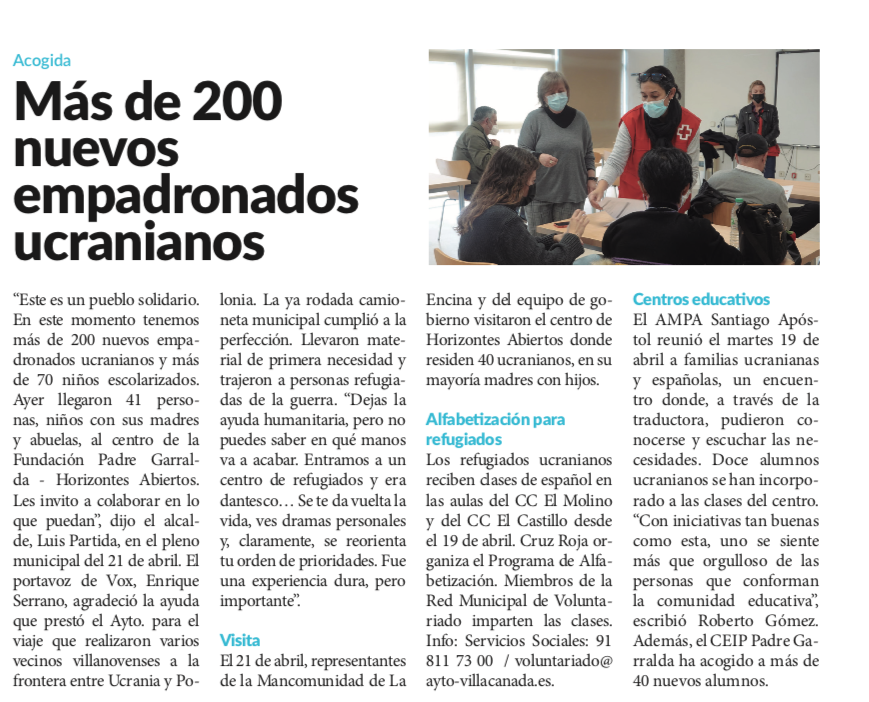 Vva. de la Cañada acoge a más de 200 ucranianos Publicado por R | Abr 3, 2022 | Villanueva de la Cañada | 0 | Publicado abril 2022