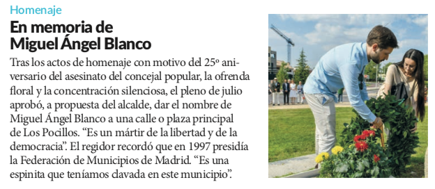 Vva. de la Cañada homenajea a Miguel Ángel Blanco en el 25º aniversario de su asesinato Publicado por R | Jul 26, 2022 | Villanueva de la Cañada | 0 | Sept 2022 / julio 2022